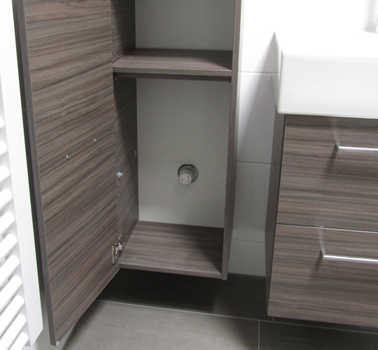 Badkamer renovatie | NuenenBediending vloerverwarming weggewerkt in badkamermeubelkast. -